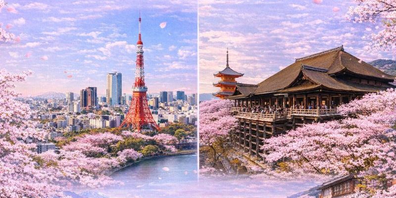 Mỗi độ xuân về, Nhật Bản lại rạng rỡ trong sắc hồng của hoa anh đào Sakura. Du lịch mùa hoa anh đào không chỉ là hành trình ngắm cảnh mà còn là dịp cảm nhận vẻ đẹp tinh tế và văn hóa đặc trưng của xứ Phù Tang. Tuy nhiên, khi lên kế hoạch du lịch Nhật Bản mùa hoa anh đào, nhiều người băn khoăn nên chọn Tokyo đương đại hay Kyoto cổ kính để có trải nghiệm vẹn tròn nhất. Chúng tôi sẽ giúp bạn so sánh chi tiết để chọn lọc điểm đến phù hợp nhất cho hành trình ngắm hoa anh đào Sakura.